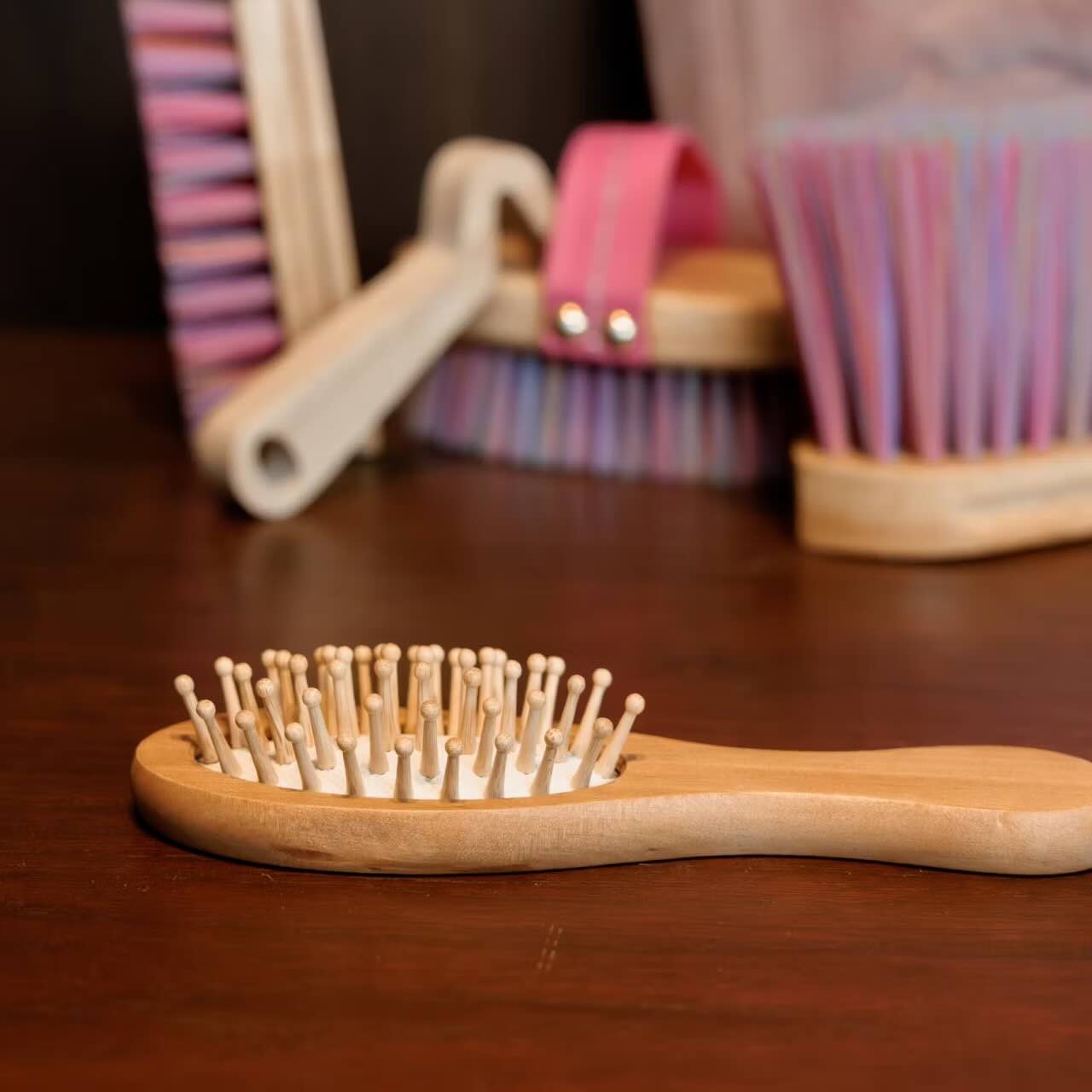 Die Mähnenbürste Sammy Einhorn Kids wurde speziell entwickelt, um Knoten und Verfilzungen mühelos zu lösen, ohne das Haar zu strapazieren. Die abgerundeten Nadeln schützen das Langhaar deines Ponys und verhindern Haarbruch. Dank des leichten Holzgriffs liegt die Bürste gut in der Hand und ermöglicht eine präzise Anwendung. Auch bei längerem Einsatz bleibt die Hand ermüdungsfrei. Die Bürste eignet sich ideal zur Vorbereitung auf das Einflechten oder Styling. So wird die tägliche Pflege zum kinderleichten Vergnügen.