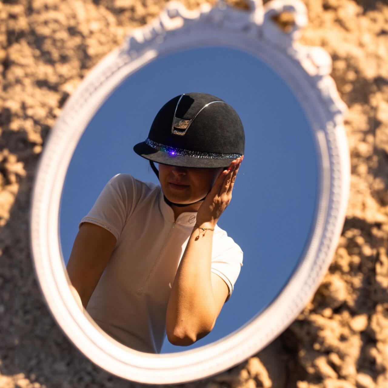Produktinformationen "Reithelm Miss Shield Premium 2.0 Blue Alcantara Matt Blue Glacier Crystal Konfiguration"