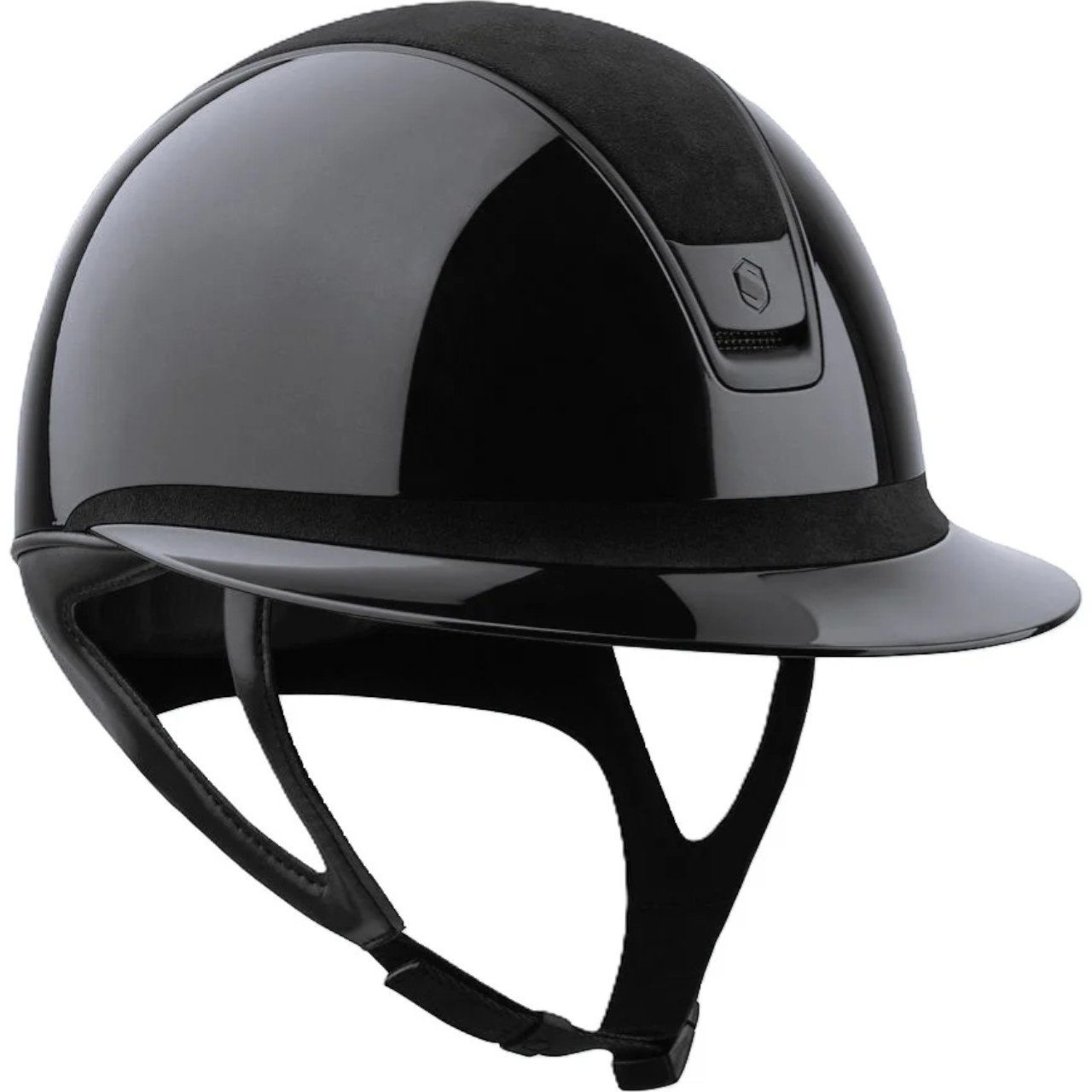 Reithelm Miss Shield 2.0 Shadowglossy Black | Alcantara Black | Matt Black von Samshield vereint maximale Sicherheit mit atemberaubendem Design. Erlebe den Komfort und die Sicherheit, die dich bei jedem Ritt begleiten, während du zugleich mit einem eleganten Look beeindruckst.