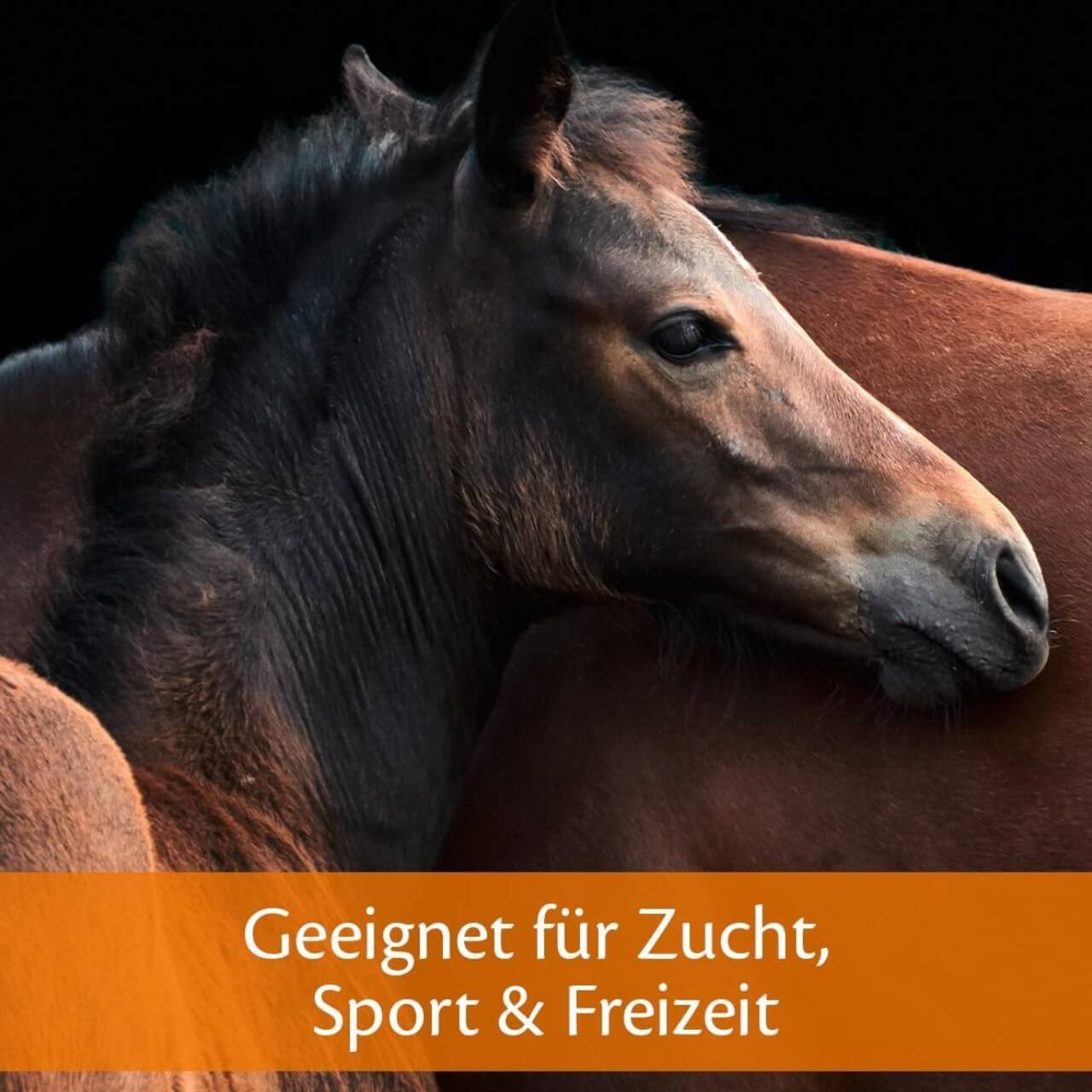 Kleinpferde, Ponys und Fohlen: 5 bis 10 ml täglich, oder 15 ml 2 bis 3 Mal pro Woche