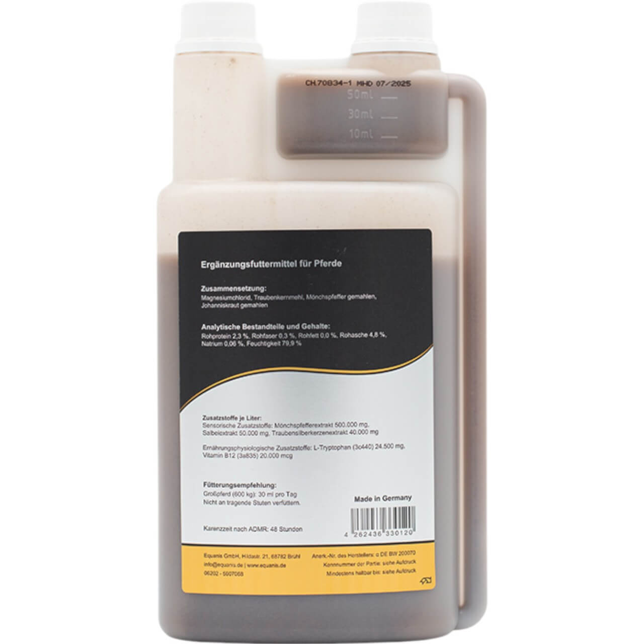 Die klare und natürliche Zusammensetzung von HormonActive spiegelt sich in seiner transparenten, 1-Liter-Flasche wider, die ein einfaches Dosieren ermöglicht. Das funktionale Design erlaubt es dir, die tägliche Futtermenge präzise zu messen, was besonders in der Reitsportbranche für eine optimale Fütterung entscheidend ist.