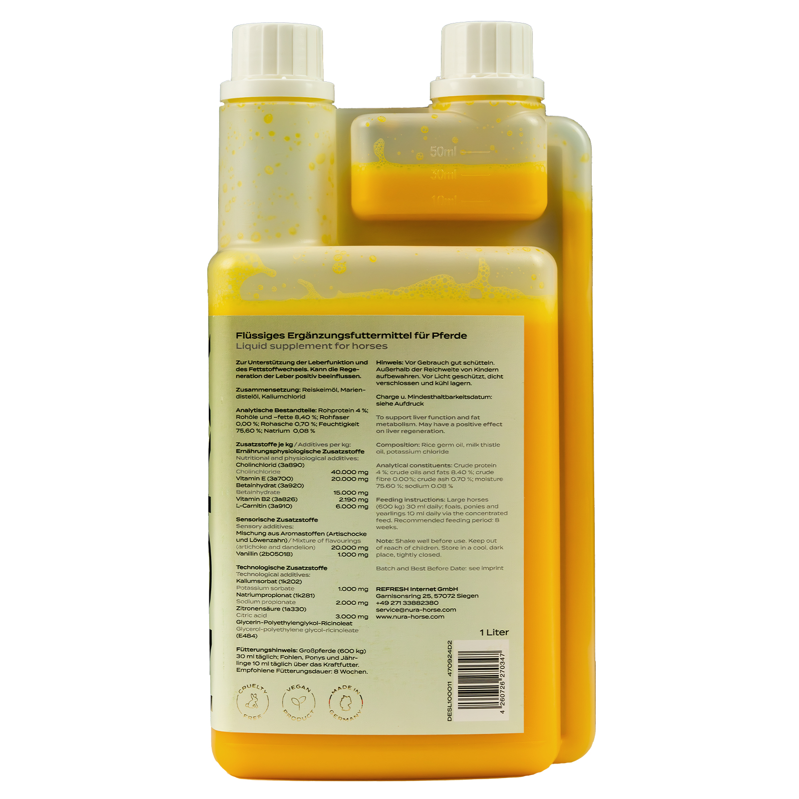 Nura Horse Supplements präsentiert mit dem Vitalquelle Zusatzfutter Ergänzungsfuttermittel ein hochwertiges flüssiges Präparat zur potenziellen Unterstützung von Leber und Stoffwechsel bei Pferden. Die sorgfältig entwickelte Rezeptur überzeugt durch Wirksamkeit, Natürlichkeit und Tierverträglichkeit.