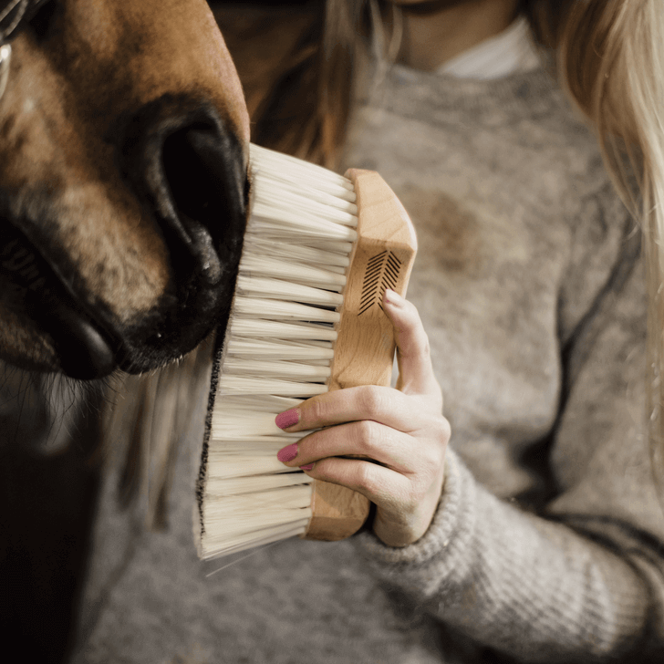 Die Pferdebürste überzeugt durch ihr elegantes Design mit lackierter Oberfläche und cremefarbenen Borsten. Die anatomische Form und die 2 Grips sorgen für eine bequeme Handhabung, sodass du mühelos auch schwer zugängliche Stellen erreichst. Diese Bürste ist nicht nur ein Hingucker, sondern auch ein praktischer Helfer in deinem Pflegearsenal.