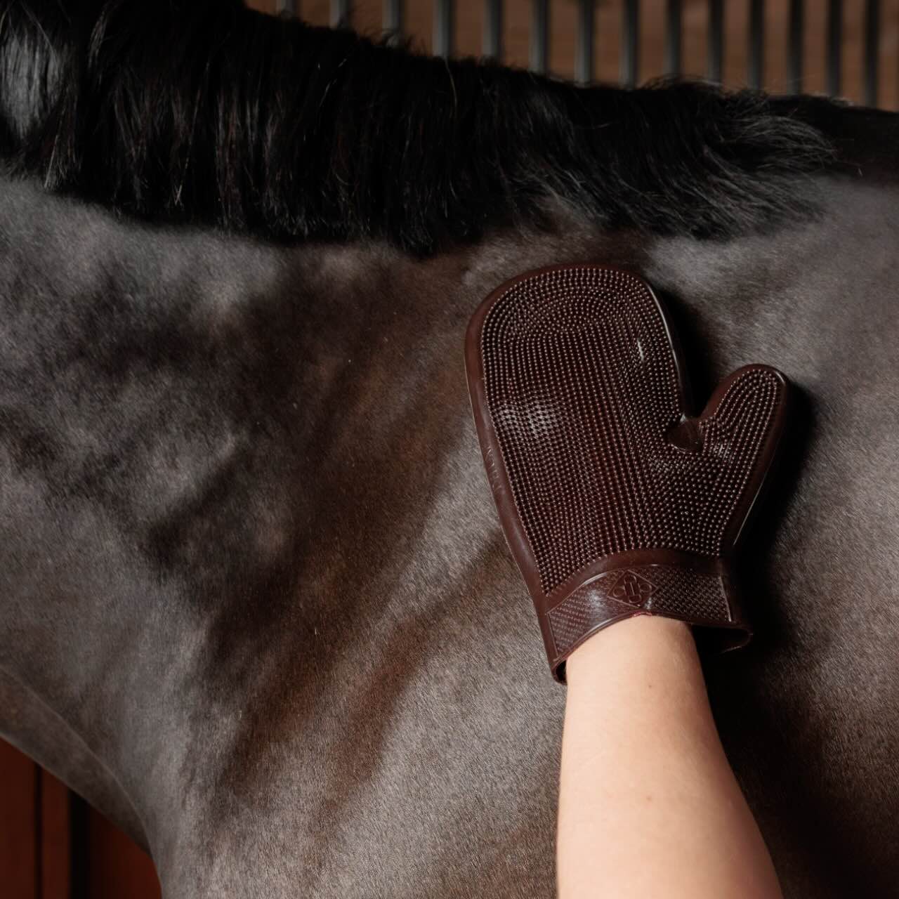 Der Gummi-Putzhandschuh von Grooming Deluxe überzeugt durch seine praktische Anwendungsvielfalt. Mit ihm kannst du lose Haare während des Fellwechsels im Frühjahr und Herbst zuverlässig entfernen. Gleichzeitig eignet er sich perfekt zum Massieren, was die Durchblutung deines Pferdes fördert. Auch beim Einshampoonieren beim Waschen zeigt er seine Stärken. Dank seiner robusten Gummistruktur bleibt er lange formstabil. Gleichzeitig sorgt die Flexibilität des Materials für eine angenehme Nutzung.