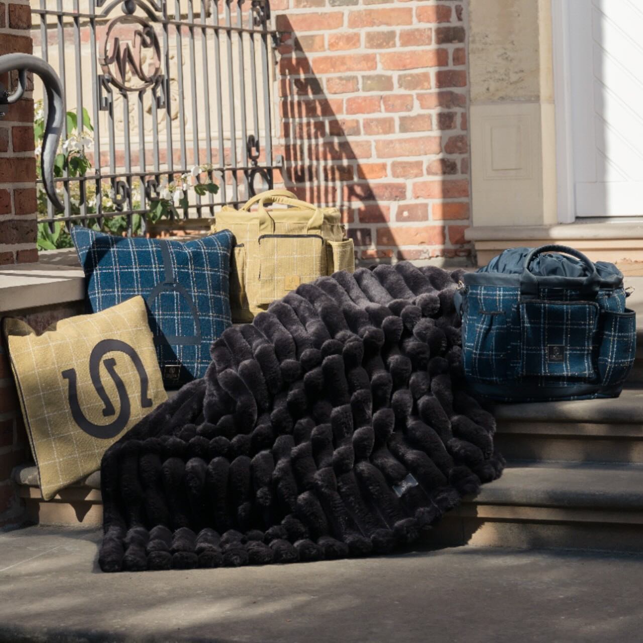 Die Eskadron Putztasche Boucle Heritage 2025 Tasche vereint stilvolles Design mit praktischer Funktionalität. Das hochwertige Bouclé-Obermaterial, kombiniert mit goldenen Details und dem markanten Heritage-Emblem, macht sie zum eleganten Begleiter für jeden Reiter – ob am Stall, auf Turnieren oder unterwegs.