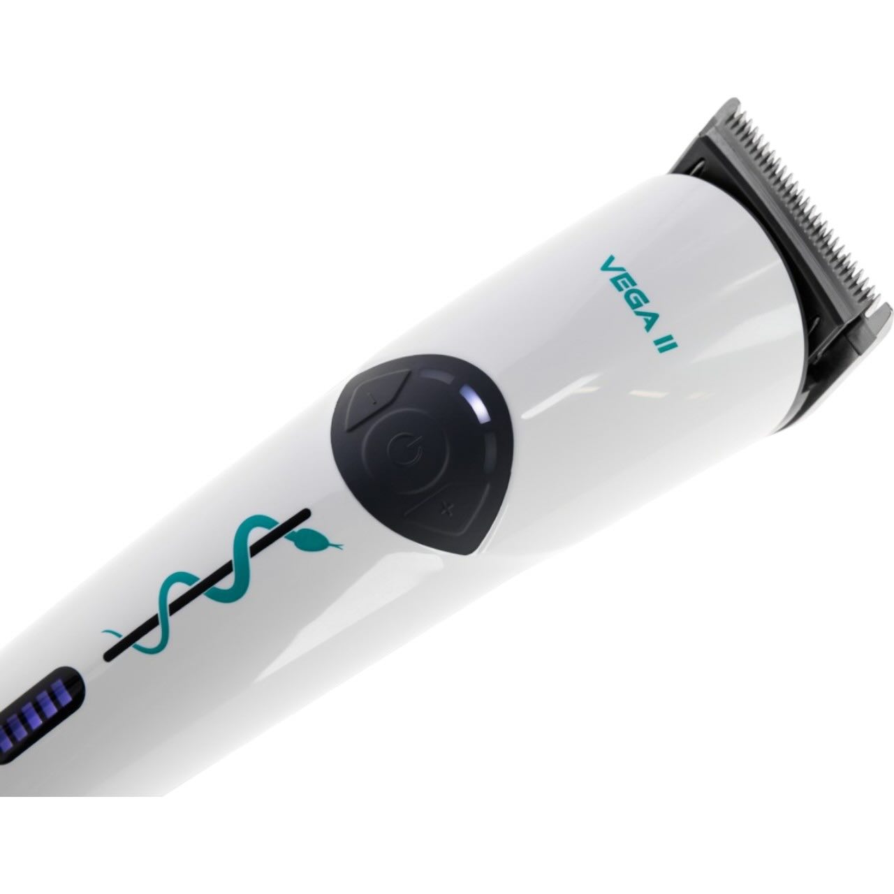 Dank ihres schlanken Designs liegt die Vega II angenehm und sicher in der Hand. Mit nur 250 g Gewicht ist sie besonders leicht und ermöglicht ermüdungsfreies Arbeiten, selbst bei längeren Einsätzen. Die vibrationsarme Technik reduziert unangenehme Vibrationen spürbar und macht die Arbeit für dich und das Tier angenehmer. Ein weiteres Highlight ist die digitale Batterieanzeige, die dir den Ladestatus jederzeit übersichtlich anzeigt. So kannst du rechtzeitig reagieren und Unterbrechungen vermeiden. Für noch mehr Flexibilität lässt sich die Schermaschine auch mit angeschlossenem Ladekabel betreiben, falls der Akku einmal leer sein sollte.