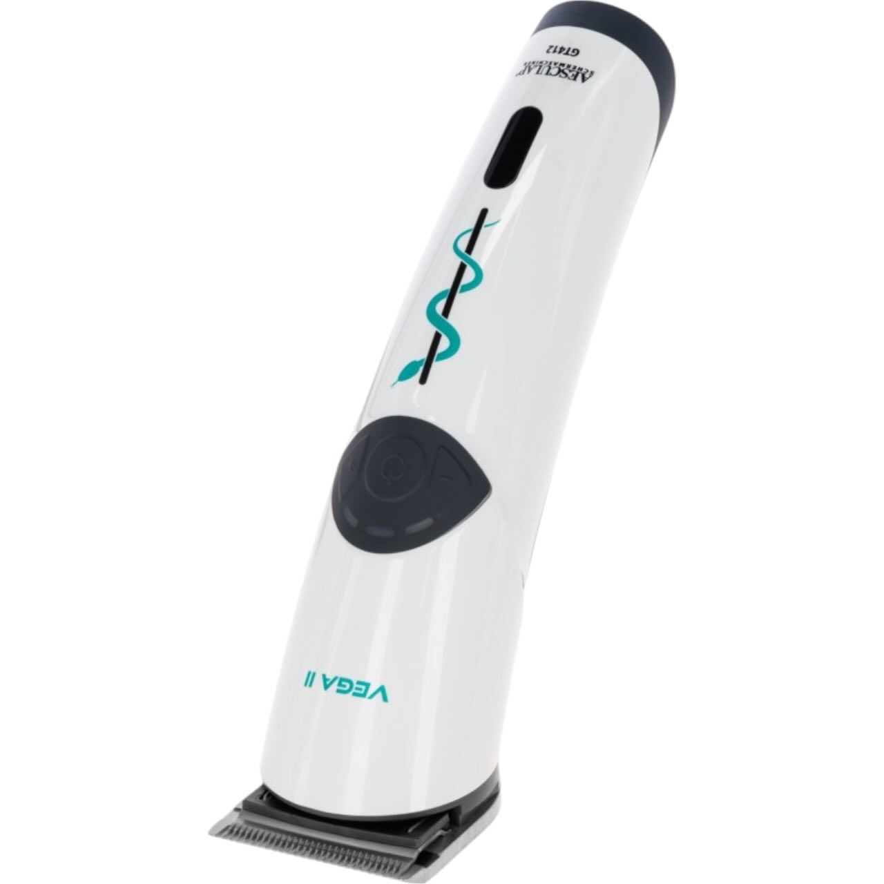 Die Vega II wurde speziell für die Anforderungen in der Veterinär- und Kleintierpflege entwickelt. Ihr leistungsstarker Akku ermöglicht bis zu drei Stunden Laufzeit und sorgt so für unterbrechungsfreies Arbeiten. Mit der elektronischen Leistungssteuerung „Speed Control“ passt sich die Maschine intelligent an unterschiedliche Felltypen und -dichten an und liefert jederzeit eine gleichmäßige Schergeschwindigkeit. Der feingezahnte Präzisionsscherkopf aus spezieller Edelstahllegierung garantiert eine hohe Schneidleistung und schont gleichzeitig die Haut des Tieres. Drei integrierte Schnittlängen (0,5/1,5/2,5 mm) erlauben dir maximale Flexibilität bei der Schur. Damit lassen sich selbst schwierige Fellpartien präzise und sicher bearbeiten.