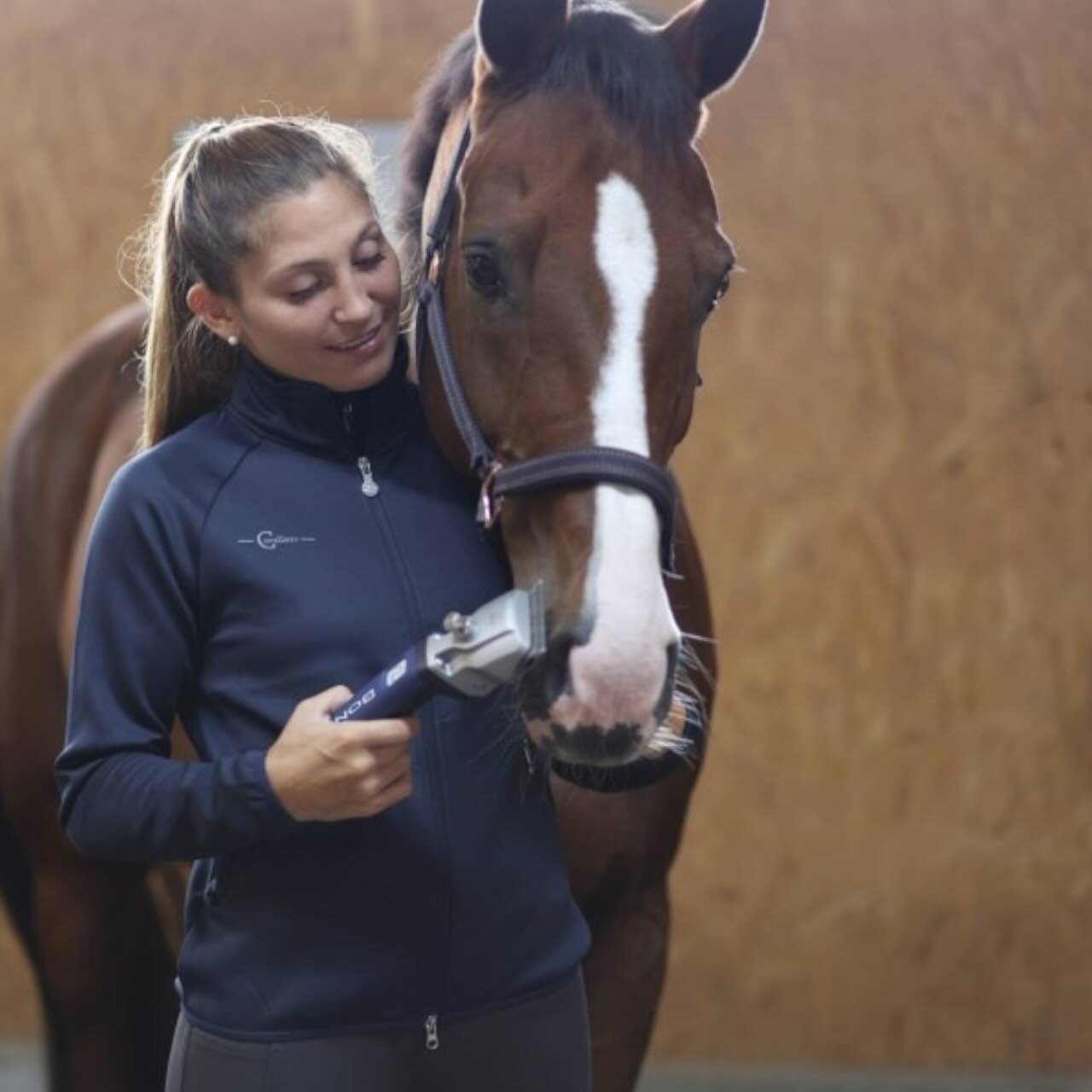 Das schlanke Design der Bonum Pro wurde speziell für kleine Hände entwickelt und liegt besonders sicher in der Hand. Mit nur 40 mm Durchmesser im Griffbereich und einer Gesamtlänge von 295 mm bietet sie eine unvergleichliche Handlichkeit. Die ausgezeichnete Balance verhindert Ermüdung, auch bei intensiver Nutzung. Durch die geringe Geräuschentwicklung bleibt dein Pferd entspannt, was das Scheren erheblich erleichtert. Zusätzlich schützt der versenkte elektronische Drucktaster vor ungewolltem Ein- oder Ausschalten. Damit hast du jederzeit volle Kontrolle über deine Arbeit.