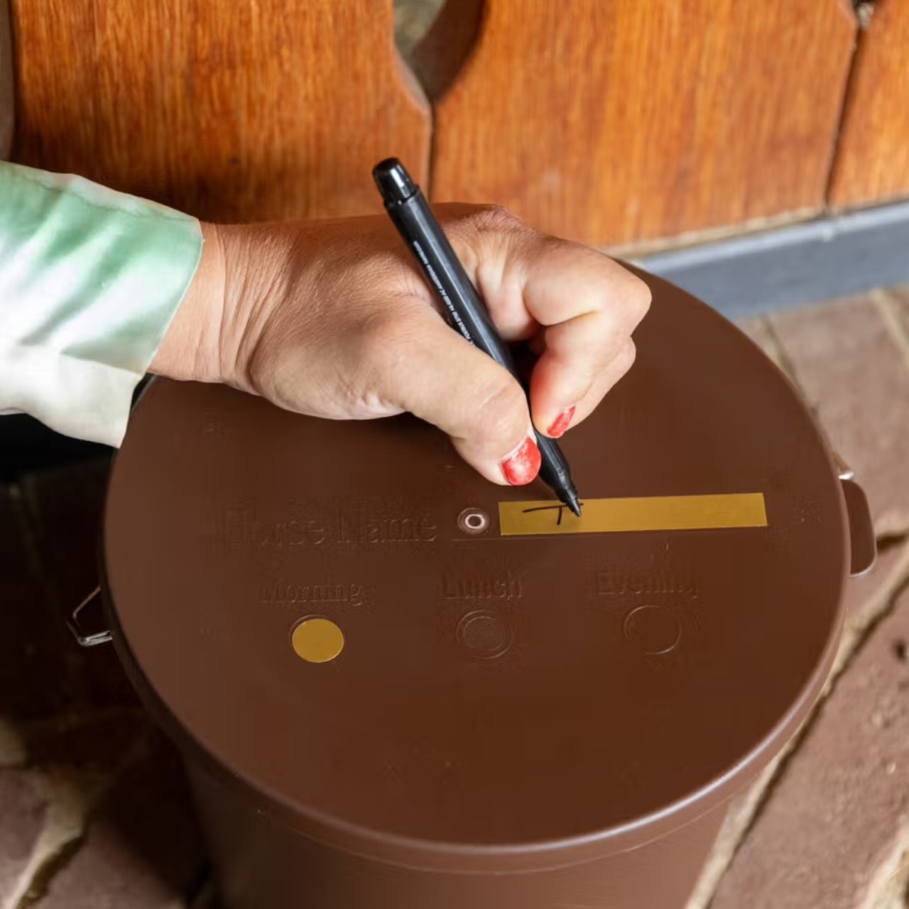 Der Eimer mit Deckel wurde speziell für die strukturierte Fütterung im Stall entwickelt. Mit einem robusten Körper und einem stabilen Metallgriff lässt er sich bequem transportieren – auch mit einer vollen Ration. Der dicht schließende Deckel schützt zuverlässig vor Staub, Feuchtigkeit und Ungeziefer. Auf dem Deckel befinden sich Markierungen für morgens, mittags und abends, um die Fütterungszeiten klar zu kennzeichnen. Zusätzlich enthalten sind Sticker, auf denen du Name, Uhrzeit oder Besonderheiten notieren kannst. So behältst du stets den Überblick – auch in großen Stallgemeinschaften.