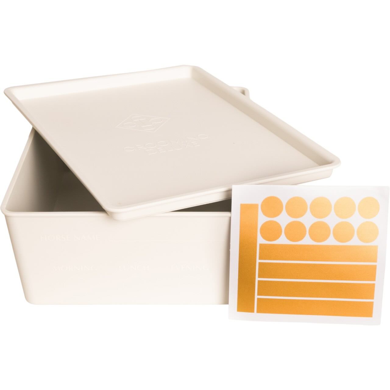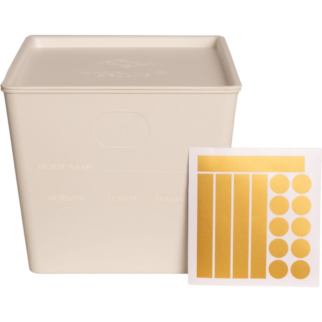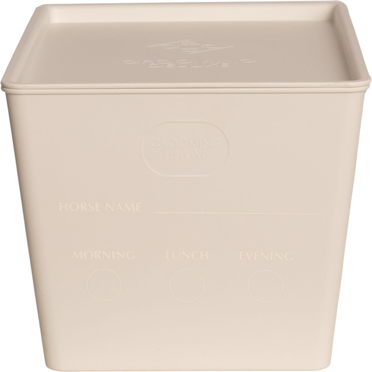 Die Grooming Deluxe Aufbewahrungsbox mit Deckel Futterbox sorgt dafür, dass das Futter deines Pferdes jederzeit frisch, sicher und griffbereit bleibt. Egal ob im Stall, auf Turnieren oder unterwegs – mit dieser Box organisierst du die Fütterung zuverlässig und praktisch.