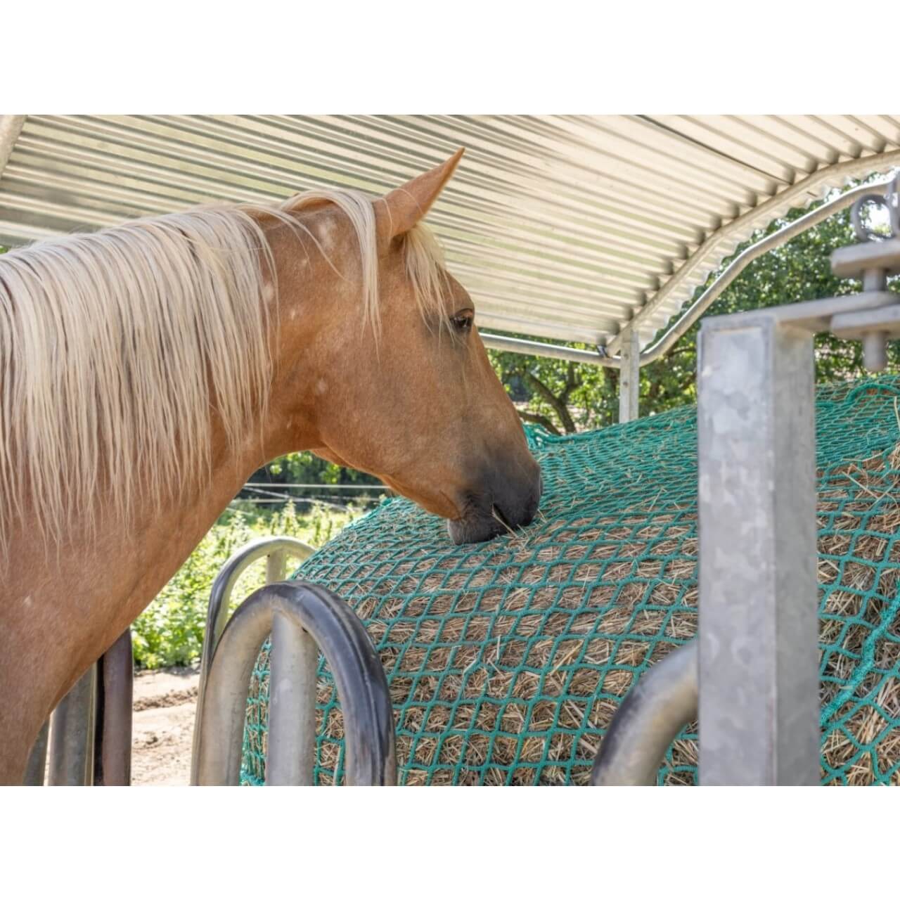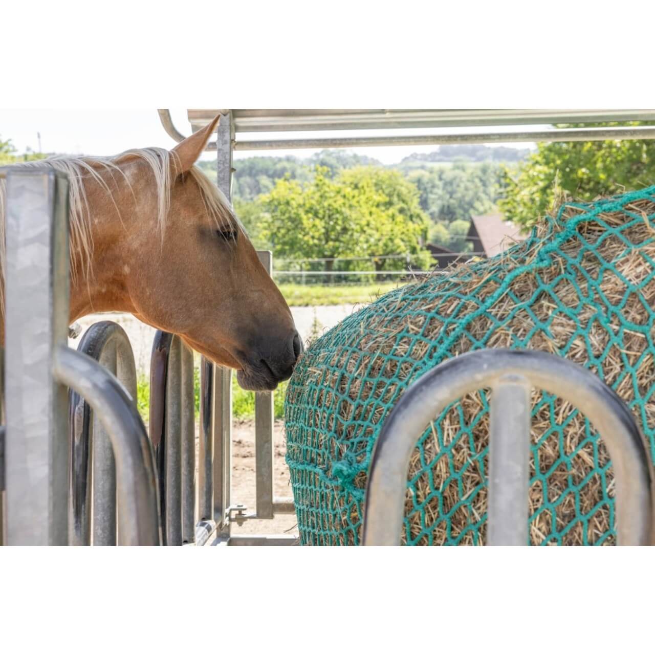 Ob in der Box, auf der Weide oder im Offenstall – dieses Heunetz lässt sich überall nutzen. Es eignet sich für Rundballen unterschiedlicher Größen und bietet eine flexible Lösung für die Raufutterversorgung. Die gleichmäßige Netzstruktur sorgt für eine natürliche Futteraufnahme und reduziert Futterverluste. Dank der hochwertigen Verarbeitung bleibt das Netz auch bei regelmäßiger Nutzung zuverlässig in Form.