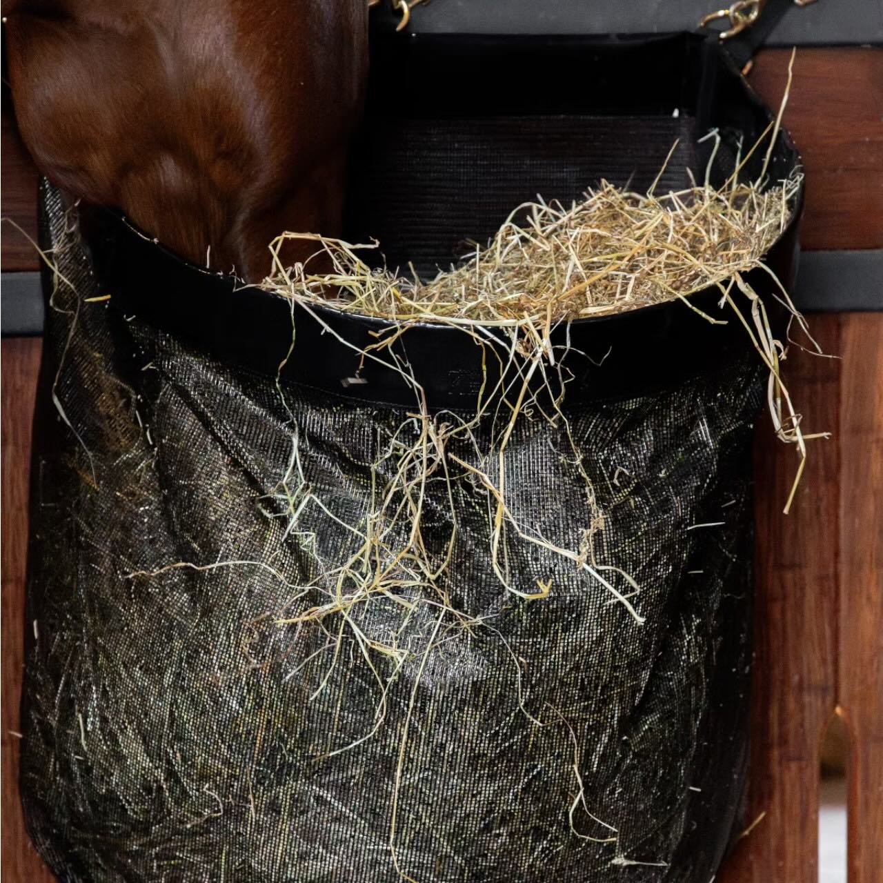 Die gerade Form der Kentucky Heutasche macht sie besonders vielseitig – ob an der Stallwand, im Anhänger oder unterwegs. Drei stabile Haken sorgen für eine einfache, sichere Befestigung in nur wenigen Handgriffen. Dadurch ist die Tasche schnell einsatzbereit und spart wertvolle Zeit im Alltag. Die großzügige Öffnung erleichtert das Befüllen und ermöglicht eine gleichmäßige Heuaufnahme. In zwei Größen erhältlich, fasst sie je nach Variante bis zu 8 kg (M) oder 14 kg (L) Heu. Diese Flexibilität macht sie zum idealen Begleiter für Pferdehalter mit unterschiedlichen Bedürfnissen.