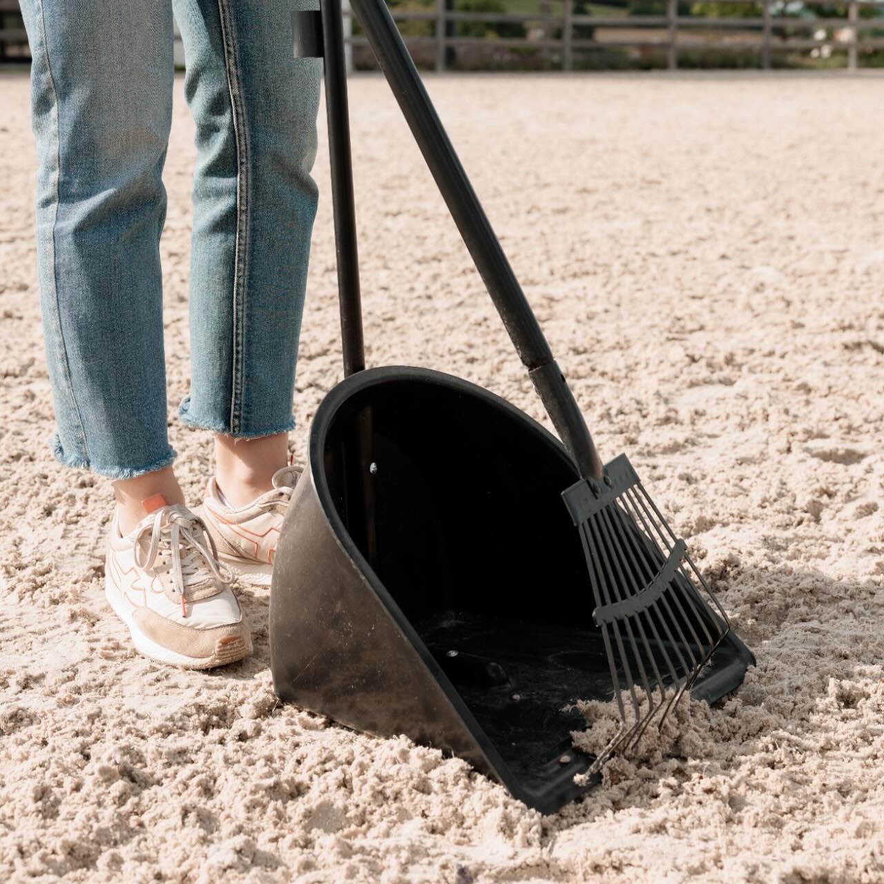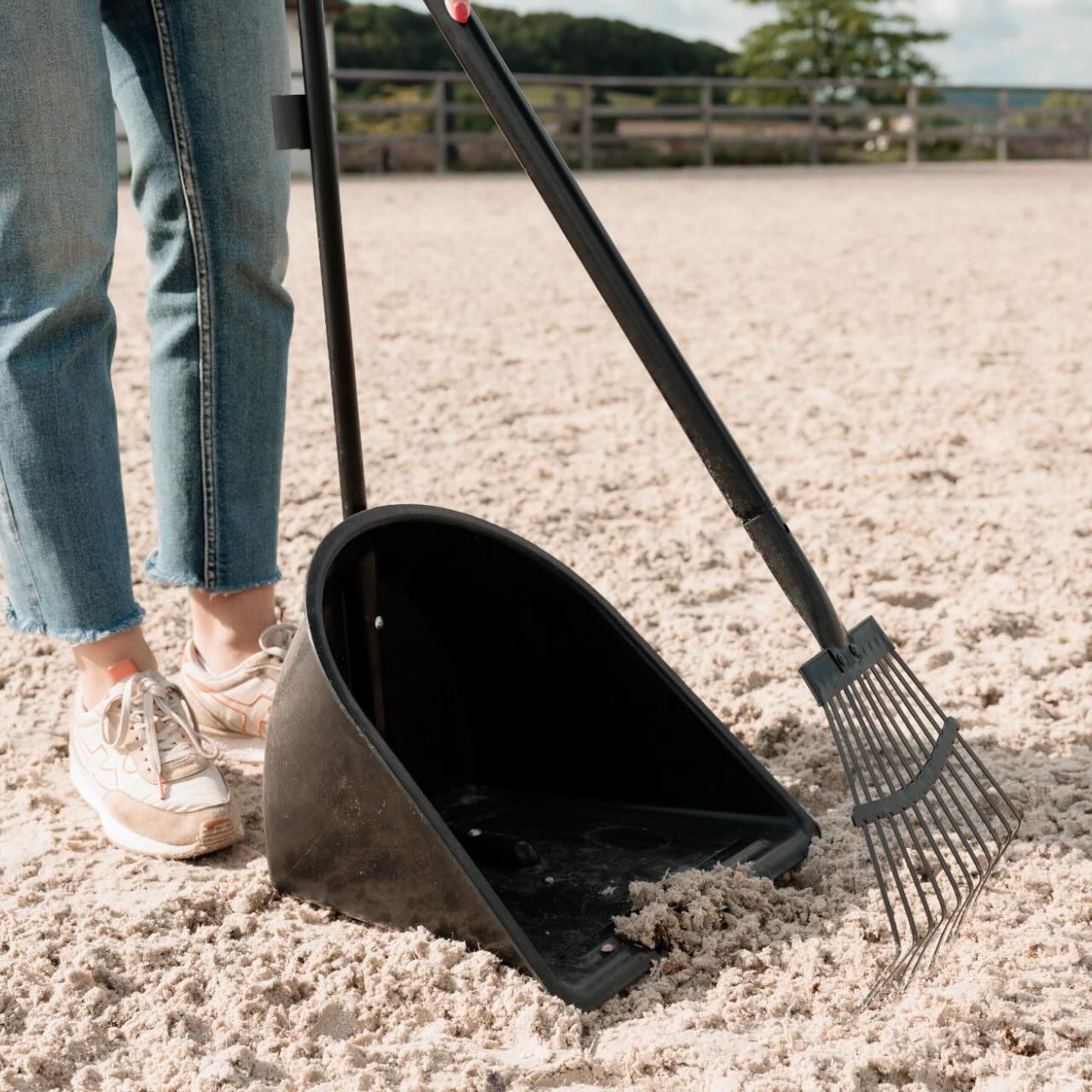Dieses Set aus Schaufel und Harke ist ein wahres Multitalent. Ob Putzplatz, Sandplatz, LKW oder Anhänger – der Mistboy mit Rechen sorgt überall für eine saubere Umgebung. Die effiziente Harke nimmt Schmutz und Mist im Handumdrehen auf. Das clevere Befestigungssystem ermöglicht eine platzsparende Aufbewahrung beider Werkzeuge. Dank seiner Flexibilität eignet sich der Bollensammler nicht nur für den Alltag am Stall, sondern auch für Turniere und Reisen. Mit diesem Set bist du bestens ausgestattet, um Ordnung einfach und schnell zu schaffen.