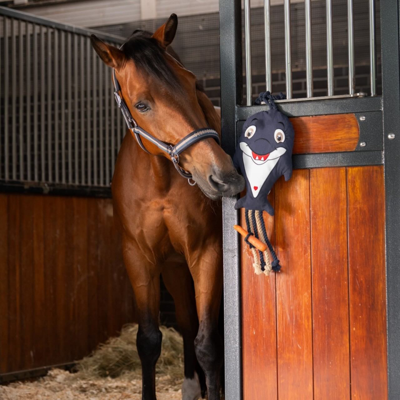 Gerade bei längeren Stallzeiten ist eine artgerechte Beschäftigung essenziell für das Wohlbefinden deines Pferdes. Das Spielzeug in auffälliger Delfin-Optik animiert zum Anstupsen, Ziehen und Erkunden. So unterstützt es die mentale Auslastung und kann unerwünschtem Verhalten wie Koppen oder Weben vorbeugen. Durch die integrierten Taue wird zusätzlich der natürliche Spiel- und Knabbertrieb gefördert. Ob in der Box, im Offenstall oder auf dem Paddock – das Spielzeug lässt sich vielseitig einsetzen. Mit einer Größe von 35 cm bietet es eine gut sichtbare und gut greifbare Beschäftigungsmöglichkeit.