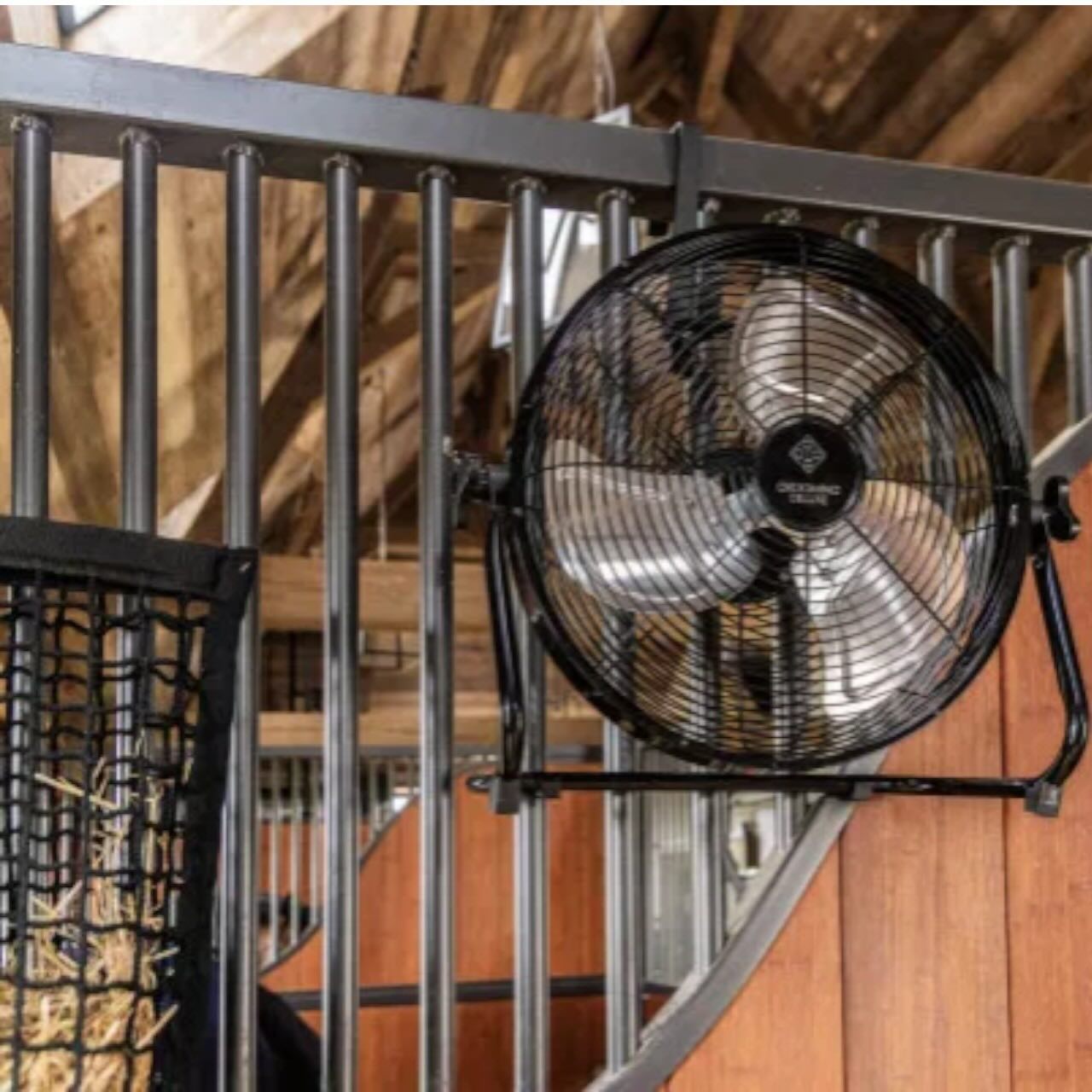 Gefertigt aus stabilem Eisen und leichtem Kunststoff ist der Ventilator besonders langlebig und widerstandsfähig. Gleichzeitig bleibt er kompakt und lässt sich mit seinen Maßen flexibel platzieren. Der stabile Standfuß sorgt für sicheren Halt auf unterschiedlichen Untergründen im Stall. Ein integrierter Griff auf der Rückseite erleichtert den Transport erheblich. So kannst du den Ventilator schnell dort einsetzen, wo er gerade benötigt wird. Ob im Stall, auf dem Turnier oder beim Transport – er ist ein zuverlässiger Begleiter.