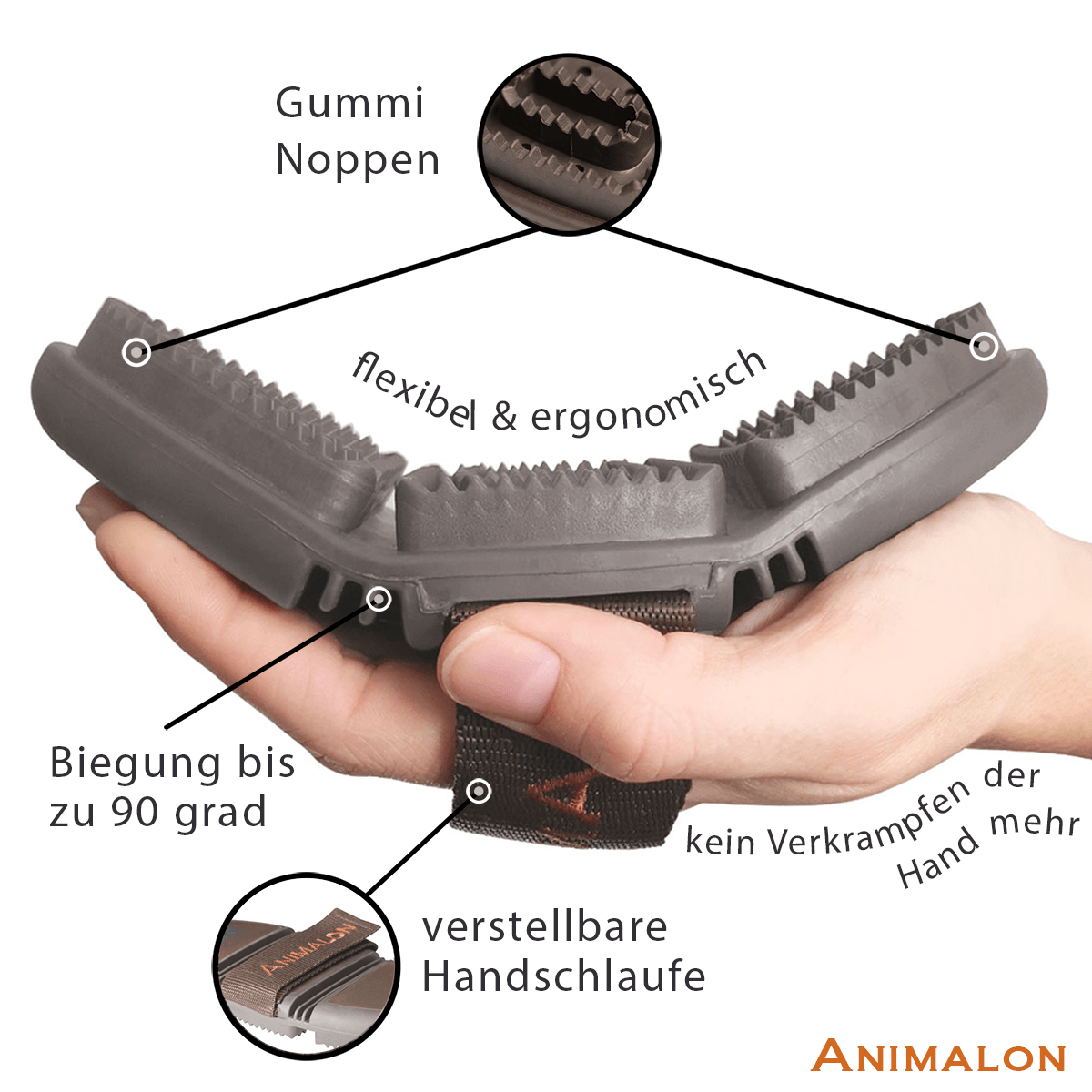 Animalon CareFlex Striegel | Flexibler & Ergonomischer Gummi-Striegel mit Klettverschluss für jede Putzbox