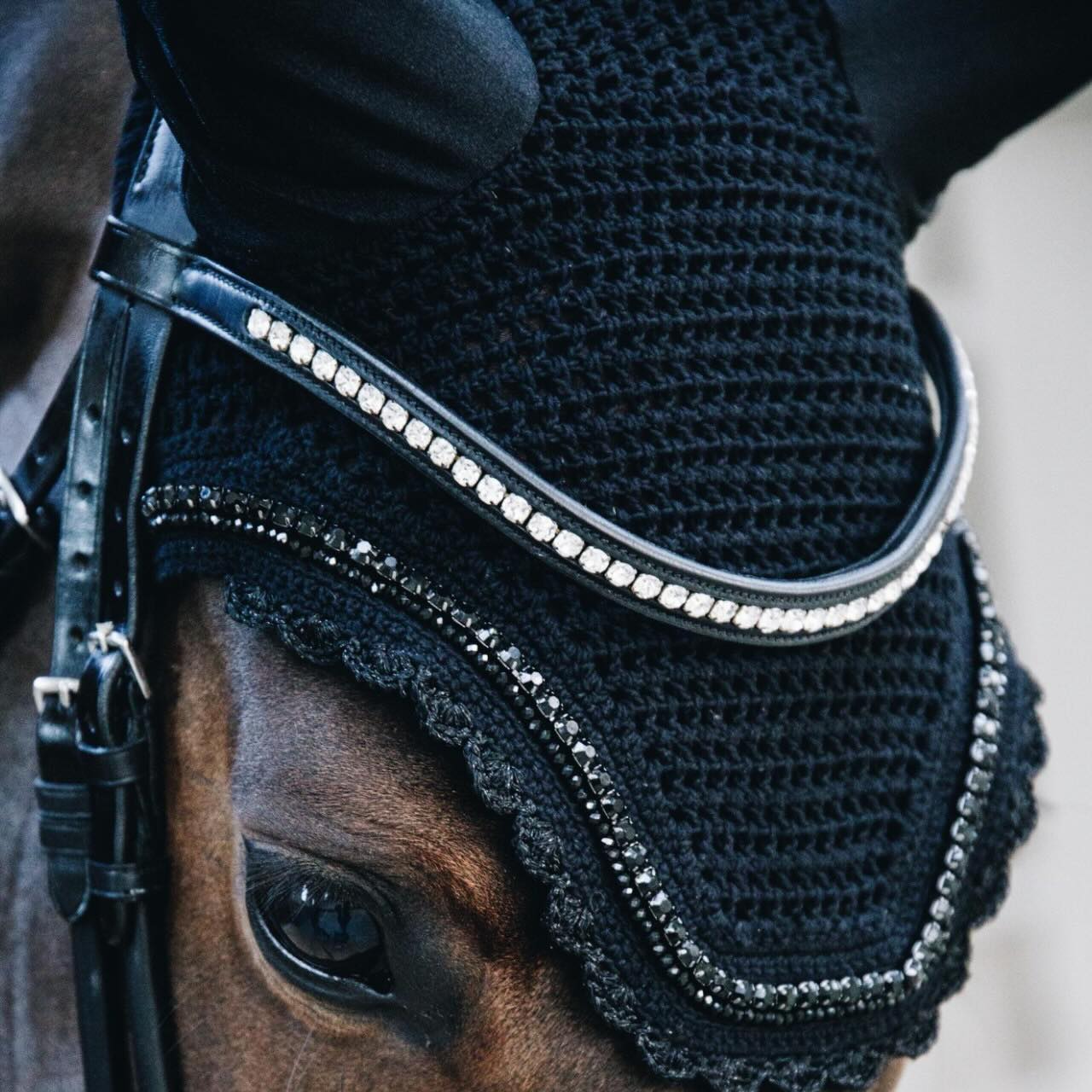 Fliegenmütze Wellington Stone & Pearl Full Fliegenhaube von Kentucky Horsewear vereint stilvolles Design mit funktionalem Schutz für dein Pferd. Die Kombination aus glitzernden Steinen und schimmernden Perlen macht sie zu einem wahren Blickfang, während das handgefertigte Stretchmaterial optimalen Tragekomfort bietet.