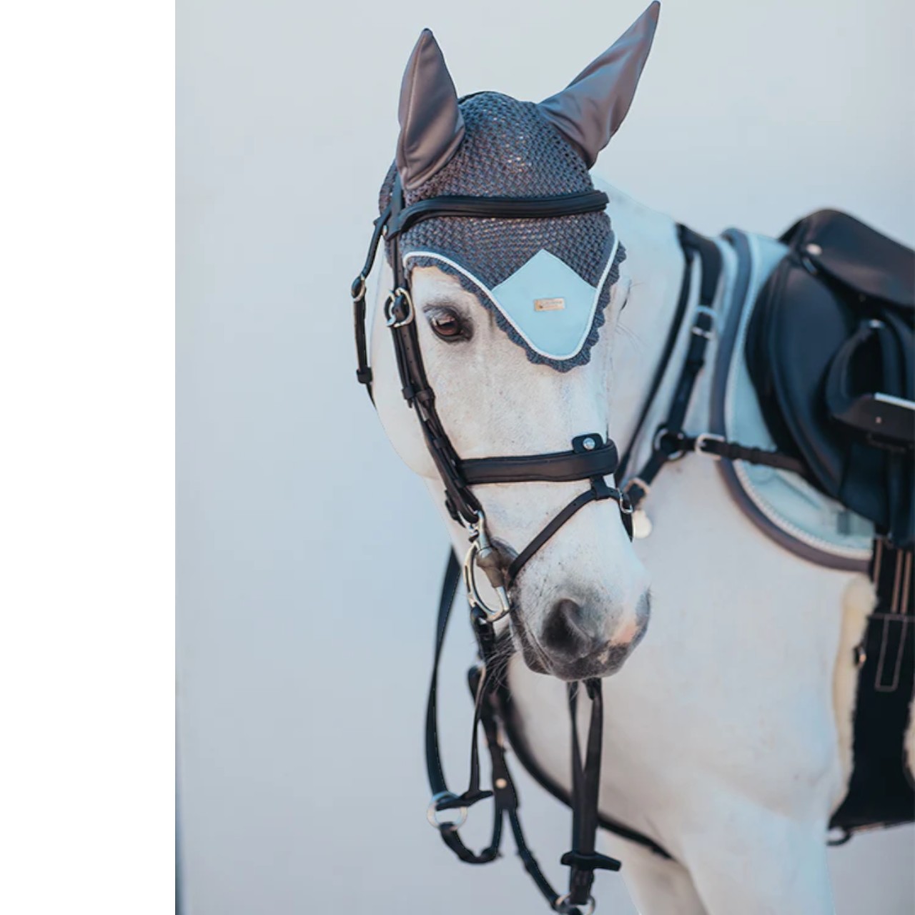 Fliegenmütze Ice Blue von Equestrian Stockholm vereint stilvolles Design mit praktischen Features. Die luxuriöse Kombination aus Grau und Ice Blue mit silbernen Akzenten bietet nicht nur einen eleganten Look, sondern schützt dein Pferd auch zuverlässig vor lästigen Insekten. Genieße die perfekte Harmonie aus Ästhetik und Komfort bei jedem Ausritt.