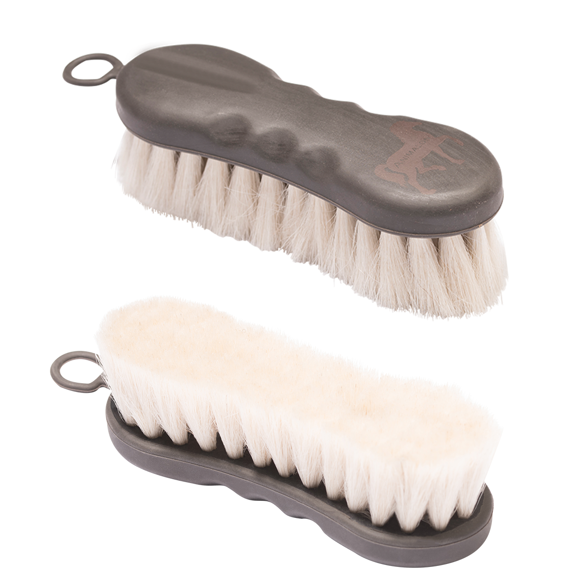 Ausgestattet mit super weichen Ziegenhaar-Borsten, entfernt die Bürste mühelos feinen Staub und Schmutz. Die natürlichen Borsten gleiten sanft über die Haut deines Pferdes und garantieren eine schonende Pflege. Diese technologisch durchdachte Bürste erleichtert dir die Reinigung empfindlicher Körperstellen erheblich.