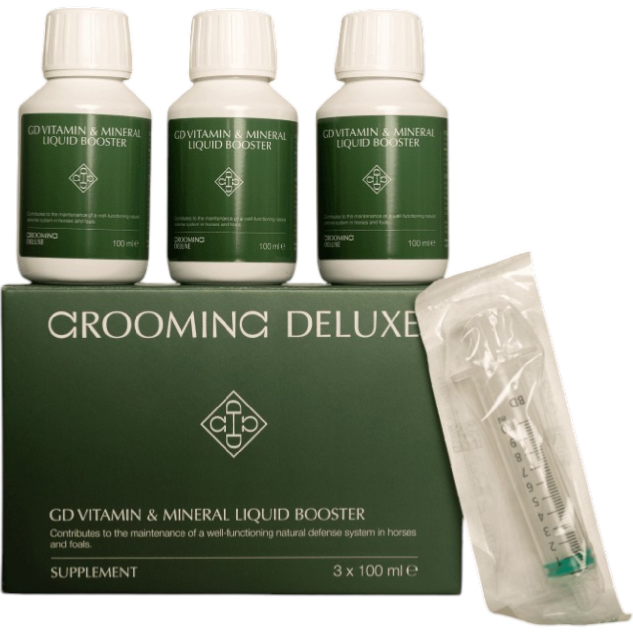 Grooming Deluxe Vitamin und Mineral Liquid Booster Ergänzungsfuttermittel ist die ideale Ergänzung zur täglichen Ration deines Pferdes. Die flüssige Form ermöglicht eine einfache Dosierung und flexible Anwendung – direkt oder über das Futter verabreicht. Die sorgfältig abgestimmte Rezeptur enthält eine Vielzahl wichtiger Vitamine, Spurenelemente und Aminosäuren. Ob Fohlen, ausgewachsenes Pferd oder Zuchtstute – das Ergänzungsfuttermittel ist für jede Lebensphase geeignet. Die Zusammensetzung ist besonders für Tiere mit erhöhtem Bedarf konzipiert, beispielsweise im Fellwechsel oder während intensiver Trainingsphasen. Mit dem Booster ergänzt du gezielt das Futter deines Pferdes um essentielle Nährstoffe.