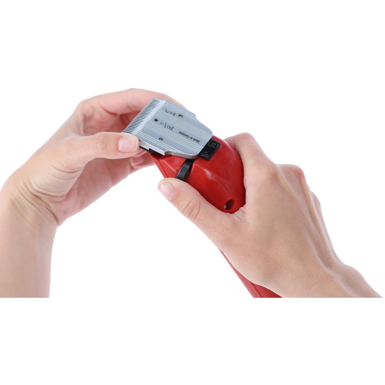 Mit ihrem schlanken, ergonomisch geformten Gehäuse bietet die Schermaschine ein ermüdungsfreies Handling, das speziell auf die Bedürfnisse professioneller Anwender abgestimmt ist. Der unzerbrechliche Spezialkunststoff sorgt für Stabilität und eine angenehme Haptik. Der vibrationsarme Betrieb schont Hand und Gelenke, selbst bei längeren Schurarbeiten. Ein intuitiv platzierter Schalter im Frontbereich ermöglicht den komfortablen Einhandbetrieb und damit maximale Kontrolle während des Scherens. So werden auch schwierige Partien sauber und präzise bearbeitet.