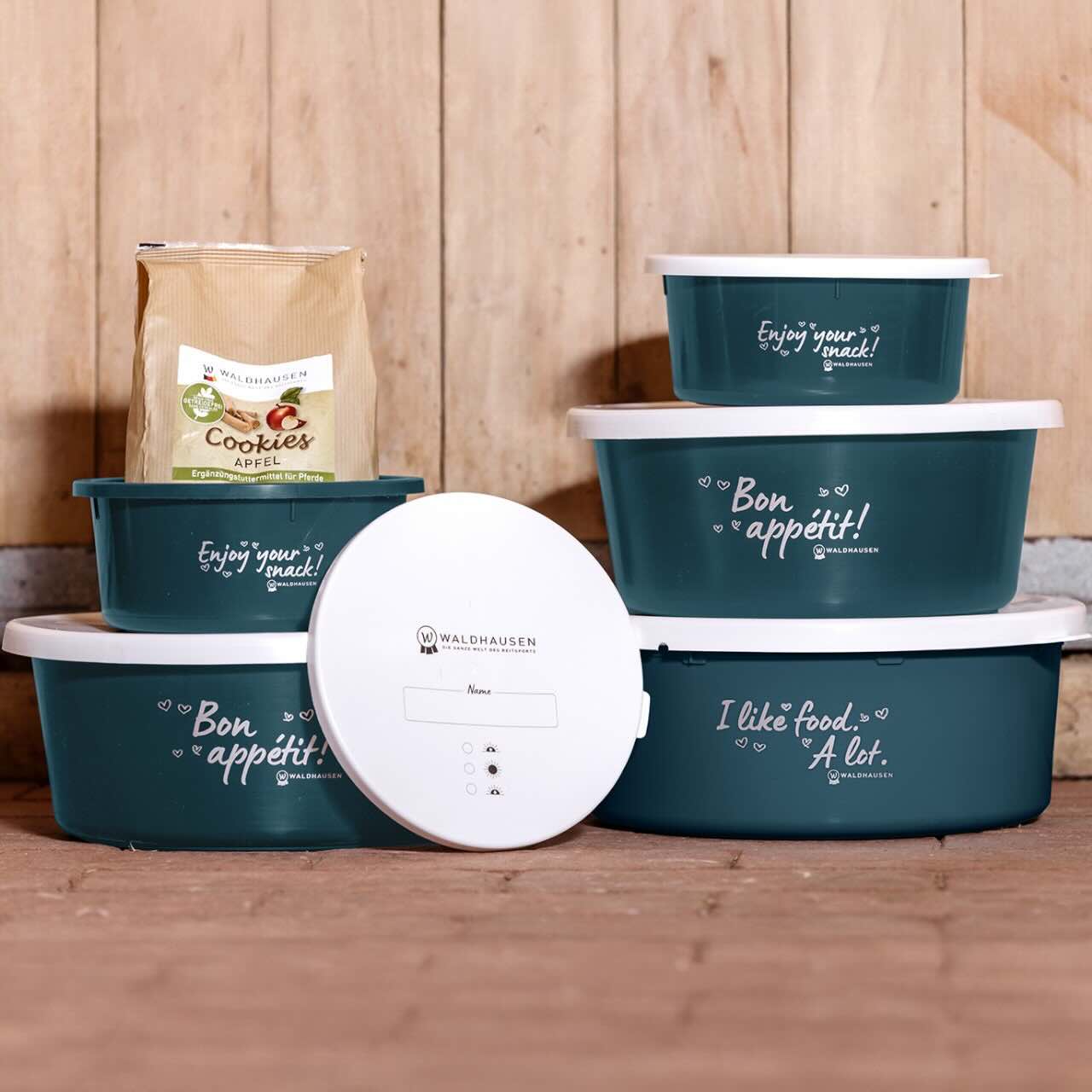 Leckerli-Schale mit Deckel Leckerliaufbewahrung von Waldhausen ist die perfekte Lösung für die sichere und stilvolle Aufbewahrung von Pferdeleckerlis. Diese robuste Schale aus lebensmittelechtem Kunststoff schützt deine Leckereien optimal vor Mäusen und bietet mit einem Fassungsvermögen von 2 Litern ausreichend Platz für all deine Snacks. In verschiedenen trendigen Farben erhältlich, erfüllt sie sowohl funktionale als auch ästhetische Ansprüche.