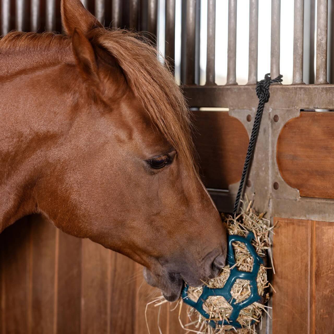 Der Heuball eignet sich hervorragend für den Einsatz im Stall oder auf der Weide. Er ist pflegeleicht und langlebig, sodass du deinem Pferd immer wieder eine sichere Beschäftigung bieten kannst. Gönne deinem Pferd diese spielerische Herausforderung und fördere gleichzeitig ein gesundes Fressverhalten!
